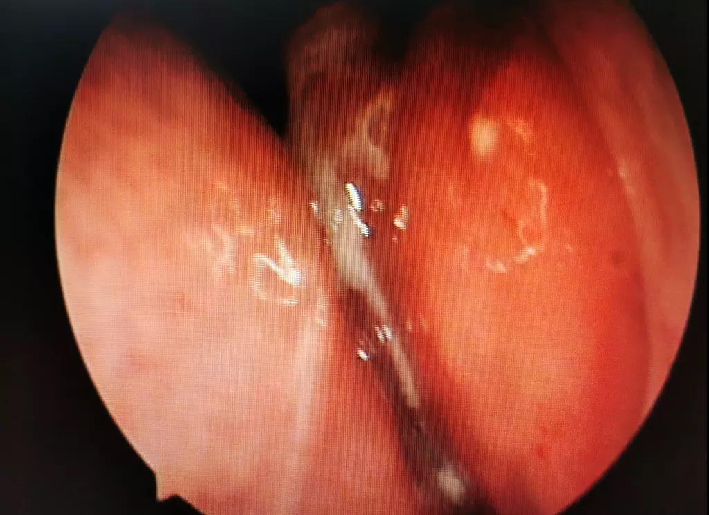 通過鼻內(nèi)鏡檢查發(fā)現(xiàn),魏大叔左鼻道有半透明息肉樣新生物,表面附著黃色膿性物。
