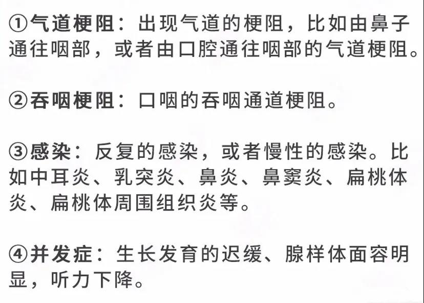 腺樣體肥大后,會阻礙鼻部氧氣流通,孩子就會打呼嚕、張嘴呼吸!出現(xiàn)鼻咽部、口腔、耳部疾病,出現(xiàn)“腺樣體面容”,影響生長發(fā)育!